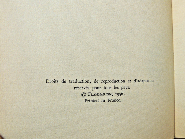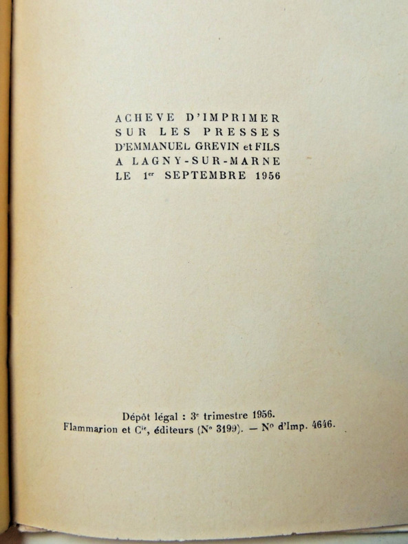 vol broché, 19x11, bon état intérieur, 252pp Flammarion achevé d'imprimé le 1 septembre 1956. Edition originale ref/20