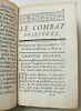 Dans lequel on trouve les moyens les plus sûrs pour vaincre les Passions et triompher du Vice ; augmenté de la Paix de l'Âme, du Bonheur d'un Cœur qui meurt à lui-même pour vivre à Dieu ; et de Pensées sur la Mort. Composé en Italien par le R P. D. Laurent Scupoli, Clerc Régulier Théatin, et traduit en François par le P. J. Brignon, de la Compagnie de Jésus. vol in12, reliure basane époque, accrocs, 14x10cm, frais, 370pp. A Douay, Chez Derbaix Frères, 1780 ref/26