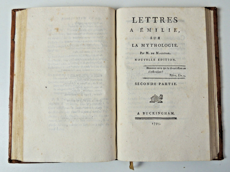 M. De Moustier Lettres a Emilie sur la mythologie. In Russian (ask us if in doubt)/M. De Moustier (Demuste) Lettres a Emilie sur la mythologie.(Pisma Emilii o mifologii.)na frants.yaz.Premiere partie. Seconde partie. (first and second parts) Liege De limprimerie des associations 1790. 108 p.. SKUalb42b88cd745bb7eba.