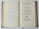 Paris, chez Renouard 1804-1809. 4 vol. in-8, belle reliure plein veau; violette , dos plat orné, dentelles sur les plats, tranches marbrées (reliure de l'époque). Dans les Lettres à Emilie... un portrait par Ducreux gravé par Gaucher et 36 figures par Moreau, gravée par Delvaux, de Ghendt, Roger, Simonet, Thomas et Trière. Exemplaire de premier tirage. Rares rousseurs, mais très bon état général. Superbes reliures