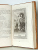 Lettres à Emilie sur la mythologie. Mention de quatrième édition. In 12 plein chagrin rouge à grain long, dos lisse, pièces de titre et tomaison cuir foncé, roulette, caissons, fers, filets dorés, triple filet doré encadrant les plats roulette dorée sur coupes. Roulette dorée intérieure, gardes à la cuve. 85x130mm. Tome 1 et 2 faux –titre- frontispice gravé par QUVERDO terminé au burin par GAUCHER, titre, 128 pages- faux titre-titre, 101 pages, complet des 14 gravures hors texte, y compris le frontispice, par QUEVERDO. Tranches dorées ; A Paris de l’imprimerie de Fr DUFFART 1794. Très bon état.