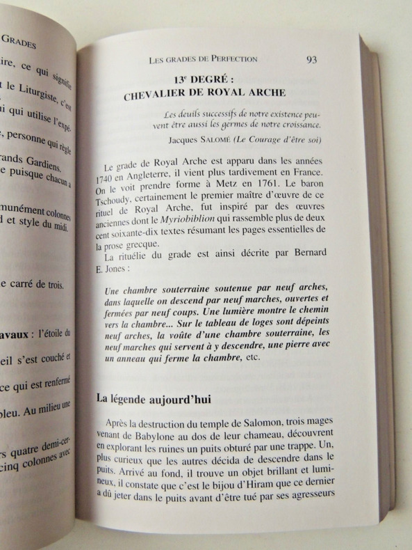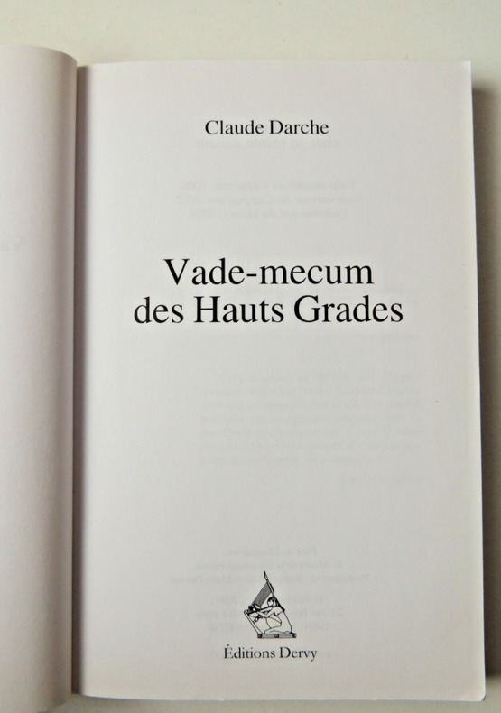 Franc-Maçonnerie. Claude Darche. Vade-mecum des Hauts Grades Au-delà des 3 premiers degrés, l'échelle rituélique comporte 30 degrés. Claude Darche présente chacun de ces grades, leur signification symbolique et les symboles qui y sont rattachés. À chaque grade et symbole, elle commente les interprétations qu'il convient de faire et explicite, de manière claire et précise, le sens profond du grade. Continuant la série des Vade-mecum, guides d'apprentissage de la symbolique maçonnique, Claude Darche aborde, avec la même démarche explicative que dans ses précédents ouvrages, l'essentiel des éléments de savoir que le Maître Maçon s'engageant sur le chemin des Hauts Grades doit posséder. Vol. broché, 19x12cm, très bon état intérieur, leg. usure de la couverture, qq figures dans le texte, 236pages. Dervy 2009 ref/106