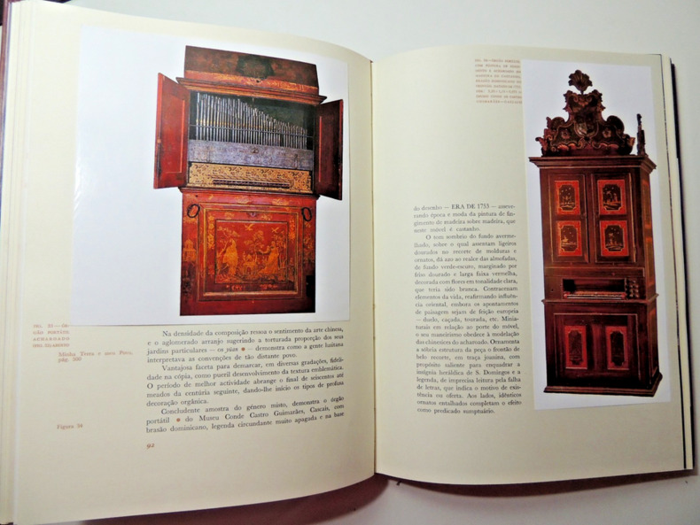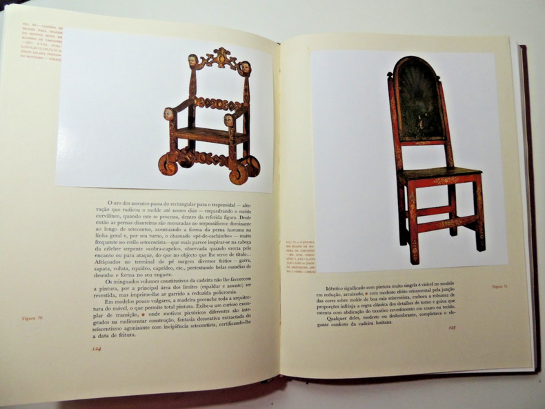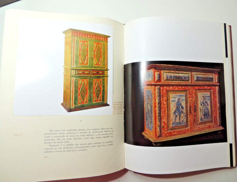 Importante subsídio para o estudo do mobiliário português antigo, da autoria de Arthur de Sandão, profundo conhecedor da temática, distinto colecionador e à época diretor do Museu Municipal de Viana do Castelo. O estudo, trata de uma temática inédita em Portugal e falo com tão grande profundidade e erudição que o tornou peça fundamental na bibliografia do mobiliário português, nomeadamente aquele que é pintado. Apresenta-se numa luxuosa edição impressa em muito encorpado papel e de excelente qualidade, densamente ilustrada com reproduções a negro e a cores, todas em separado, dos mais representativos e belos exemplares de móveis antigos portugueses.