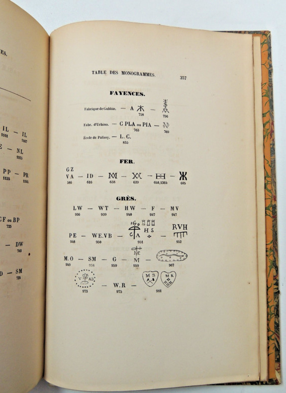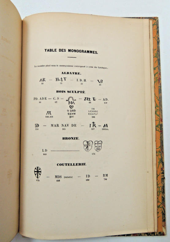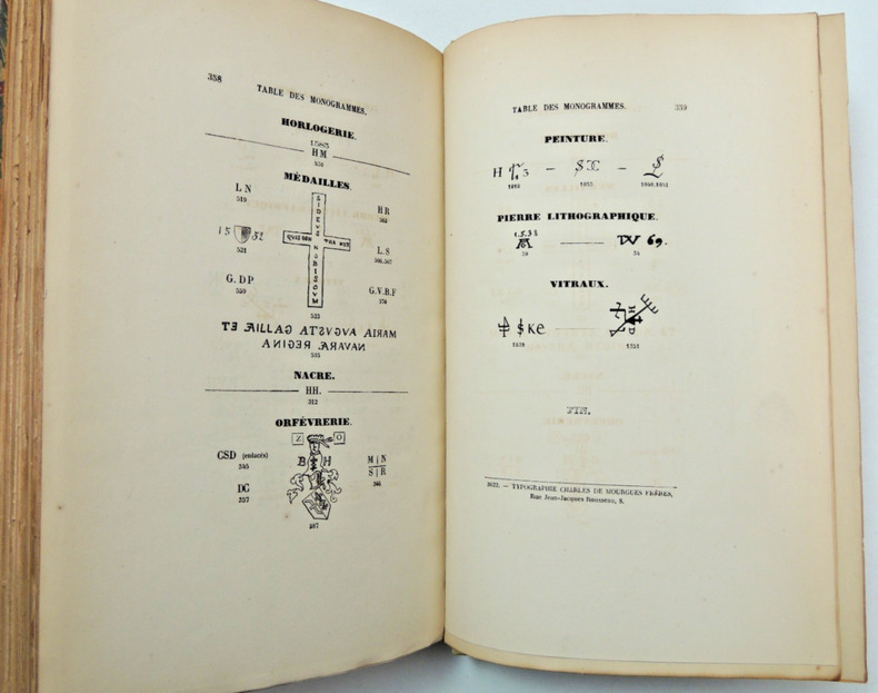 Vol in grand in8, demi veau glacé, 28x20, très bel état intérieur, 352pp + table des monogrammes, marques et poinçons ( 4pp) Paris, Charles de Mourgues, 1861 ref/179