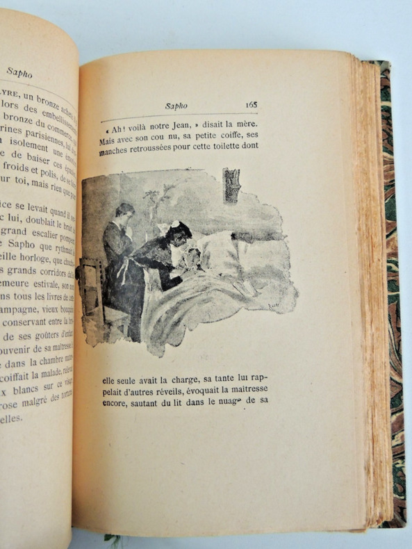Paris,Marpon et Flammarion,1887; in-18 demi-basane blonde, dos lisse, fleurette dorée, date dorée en pied, titre et auteur dorés sur une large étiquette vert sombre, tête dorée, couverture illustrée en couleurs conservée (reliure vers 1900) ; 2ff., 376pp.; ex-libris étiquette orné “Rémy G.Saisselin”. Couverture illustrée en couleurs et très nombreuses illustrations dans le texte en noir d’après Rossi, Myrbach, etc…(Vicaire III-57). De la Collection Artistique Guillaume et Cie.
