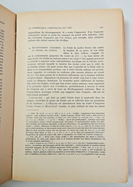 Volume II (dernier). Astronomie - Astronomie littéraire - Symbolique du ciel - Ciel et lumière céleste - Le rudiment cosmographique - Culture d'Isidore de Séville - La philosophie ancienne, etc. La thèse pour le doctorat est lettre, grand in8, broché, 25x16cm, bel état intérieur, couverture usures d'usages, 440pp non coupées. Paris, études augustiniennes 1959