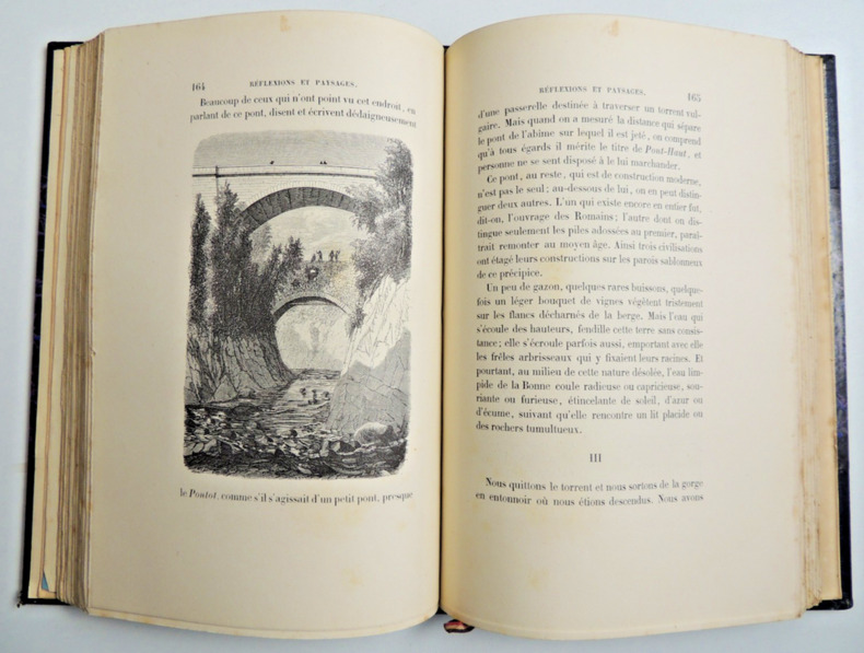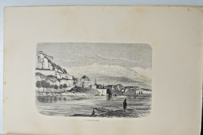 Édition illustrée, gravée par E.Dardelet Un itinéraire à la fois historique (histoire du Dauphiné), géographique (présentation de l'Isère), philosophique (impressions, réflexions et paysages) et spirituel (pèlerinage et miracle de La Salette-Fallavaux) à travers plusieurs communes de l'Isère : Grenoble, Vizille, Laffrey, La Mure, Corps, La Salette-Fallavaux. La Salette est un petit village situé dans les Alpes françaises, célèbre pour son sanctuaire marial, Notre-Dame de La Salette. Grenoble, quant à elle, est une ville importante dans la région Auvergne-Rhône-Alpes, également située dans les Alpes. vol in4, 240x160, superbe reliure demi cuir à coins, dos à nerfs, bien frais,tranche tête dorée à l'or fin, coins frottés, 319pp. Reliure signée L.Quetan, ex libris. Couverture d'origine conservée contrecollée. Rare. Baratier frères et fils collection , 1863