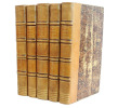 Paris, Eugène-Renduel, 1836-1839. 5 vol. in-8°. t. I (1836) : (2) ff.-IV-559 pp (texte et appendice).-[1] p. de table ; t. II (1836) : (2) ff.-VIII-493 pp.-(1) f. ; t. III (1836) : (2) ff.-573 pp.-(1) f. ; t. IV (1839) : (2) ff.-II-489 pp.-(1) f. ; t. V (1839) : (2) ff.-553 pp.-(1) f. Demi cuir de Russie rouge à coins, dos à faux nerfs orné de filets dorés (rel. ép.).