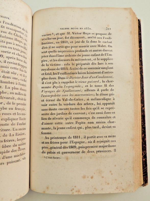 "Édition originale. Plus encore que le Tableau historique et critique de la poésie française et du théâtre français au seizième siècle de 1828, ces Critiques et portraits littéraires signent le véritable acte de naissance, en librairie, du Sainte-Beuve critique littéraire appelé à éclipser le poète qui, seulement deux ans plus tôt, en 1830, publiait ses Consolations considérées par Barbey d'Aurevilly comme un des sommets du romantisme. ""Pour Sainte-Beuve"". Ces portraits, souvent d'auteurs classiques, constituent ainsi la matrice de sa fameuse méthode que, plus tard, combattra Proust - au fond sans grand succès car son influence demeure. Il serait intéressant d'appliquer ce parti-pris de corrélation entre la vie et l'œuvre à Sainte-Beuve lui-même lorsqu'il écrit Victor Hugo en 1831 -article de la seconde moitié du recueil, où il traite plus de ses contemporains- juste après avoir noué une idylle avec l'épouse du grand homme. Hugo en 1831 n'avait pas trente ans, de même qu'Adèle et Sainte-Beuve lui-même (né en 1804) au moment de la sortie du livre. Bel exemplaire relié à l'époque. Quelques rousseurs. Vicaire, Livres du XIXe siècle, VII, 119-120. - Clouzot, Guide du bibliophile, p.239: Rare."