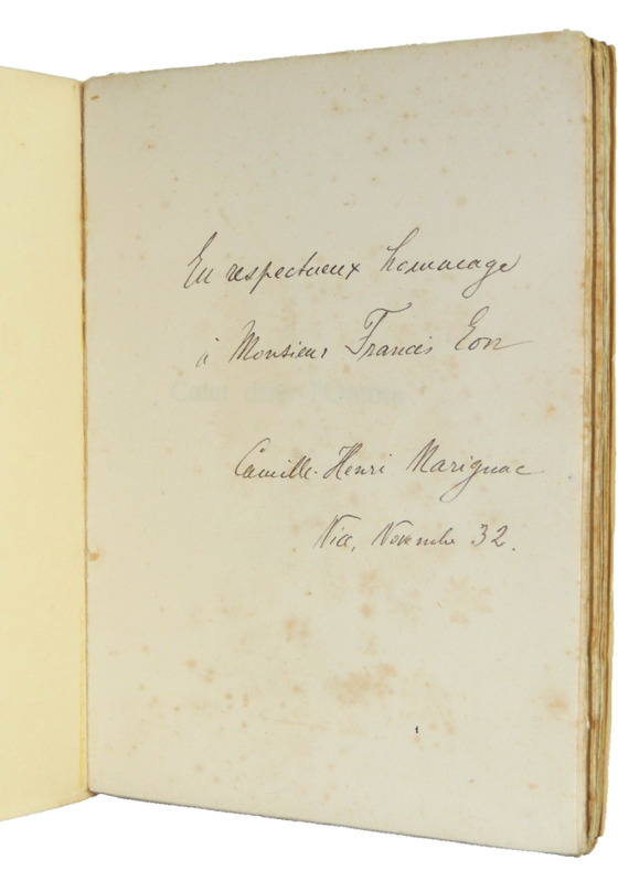 Bel envoi de l'auteur à Françis Eon " en respectueux hommage " Camille Henri Marignac , est un Poète et romancier du XXe siècle Broché, 188pages, en partie non coupées, 19x14cm, quelques illustrations en tête de chapitres, Excellent état ! Edition de la Caravelle 1931 ref/2