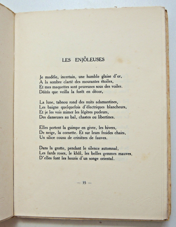 Françis Eon (1879-1949) Né à Fontenay-le-Comte (Vendée) en 1879, de père breton et de mère poitevine, Francis Eon est l'auteur de plusieurs volumes de vers et de nombreux articles dans les revues littéraires de son temps. Il a collaboré à La Revue du Bas Poitou, le Beffroi, Poésie, La Phalange, Le Divan, L'Ile sonnante, Le Mercure de France, la NRF... "La poésie des vers concis et des strophes bien formées, qui est la sienne, ne le prive pas plus d'un goût sensuel des belles syllabes que de la tendresse bucolique et de la gravité élégiaque. La force d'un noble souvenir, une puissante et douce fidélité animent de leur souffle La suite à Perséphone", écrit de lui Henri Clouard. La promeneuse, poèmes, (Ed. du Beffroi, 1905). - Trois années, poèmes, (Le Divan, 1907) - La vie continue, poèmes, (Paris, éd. de La Plume, 1919). - La suite à Perséphone, poèmes (1933).