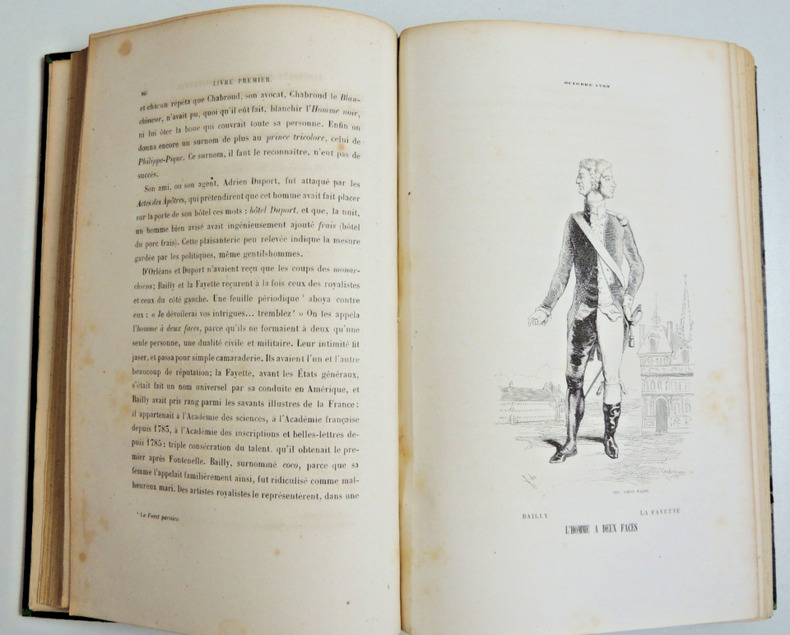Avec les estampes, costumes, médailles, caricatures, portraits historiés et autographes les plus remarquables du temps. 3°édition entièrement refondue et considérablement augmentée. Parsi. Gustave Havard. 1857. 1858. 2 tomes en 2 volumes gd in-8 (175 x 269mm) dos chagrin café à 4 nerfs, titres et caissons or, plats et gardes marbrés, 1f., VIII, 568 pages et 3ff., 547 pages et 7 pages n.ch. (table et classement des gravures), très nombreuses et intéressantes illustrations en noir et blanc dans et hors texte. Tout premiers ff. de chaque tome entachés d'auréoles claires, sinon qq. rousseurs, plutôt bon exemplaire, très bien relié. Vicaire II, 166-167 pour la 1ére édition.