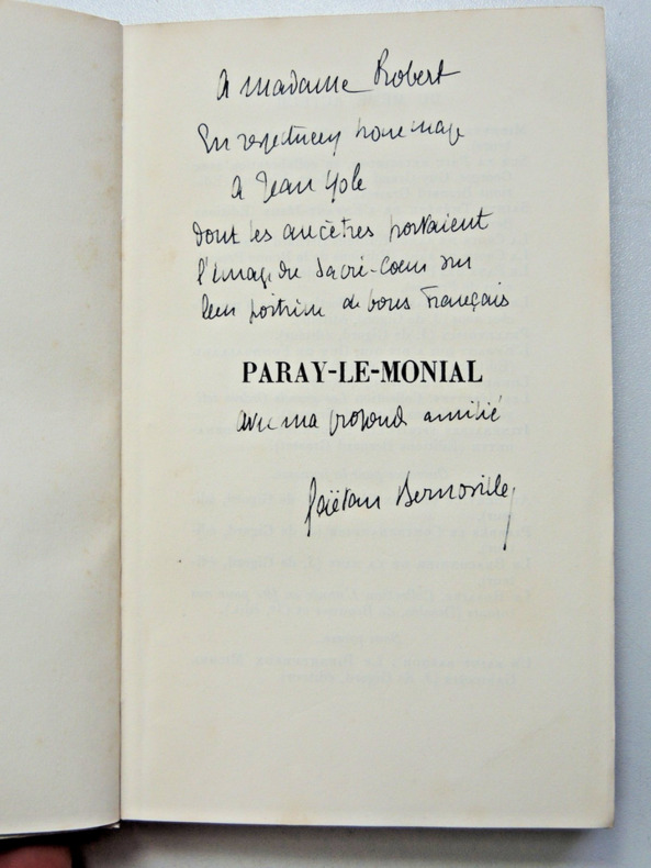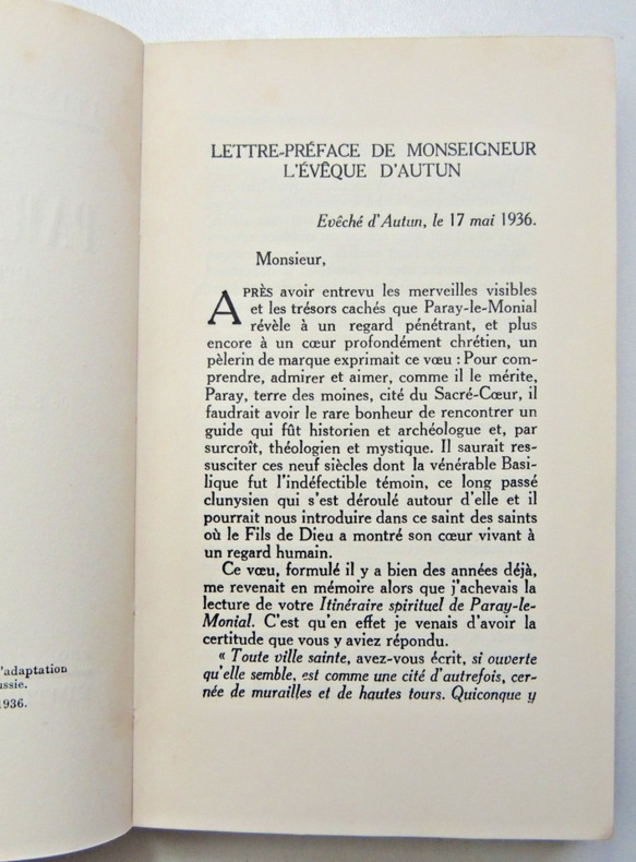 avec une lettre préface de S .ex Monseigneur Chassagnon, évêque d'Autin, Chalon et Macon Bel envoi de l'auteur en première page à Jean Yole broché, 170x105, 240pp ,bel exemplaire Grasset 1936 ref/2