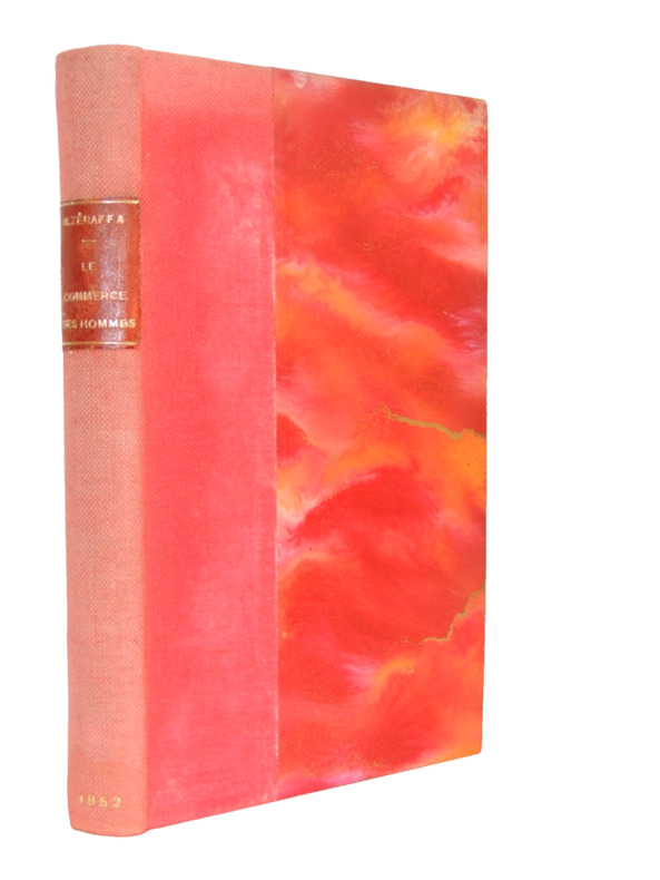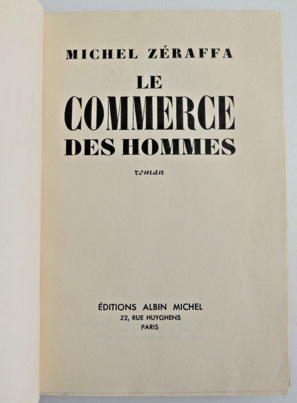 Le commerce des hommes de Michel Zéraffa est un roman d’une grande acuité psychologique qui explore les rouages du monde des affaires et les ambiguïtés des relations humaines. À travers des personnages pris dans les mécanismes du pouvoir et de l’argent, Zéraffa dissèque les illusions sociales et les compromis moraux. Le commerce n’y est pas seulement économique : il devient aussi celui des sentiments, des ambitions et des consciences. Dans une écriture élégante et analytique, l’auteur peint une société où tout semble négociable, jusqu’à l’intégrité même des individus. Le récit, tendu et lucide, interroge la place de l’homme dans un univers dominé par l’intérêt et la réussite. Un roman subtil et pénétrant, à redécouvrir pour sa modernité et la finesse de son regard. Volume relié demi toile, 190x150, couvertures conservées, très bel état intérieur, 290pp. Paris, Albin Michel, 1952. Edition Originale ref/5