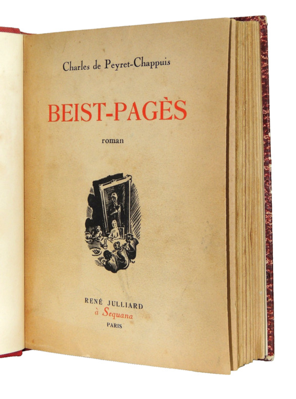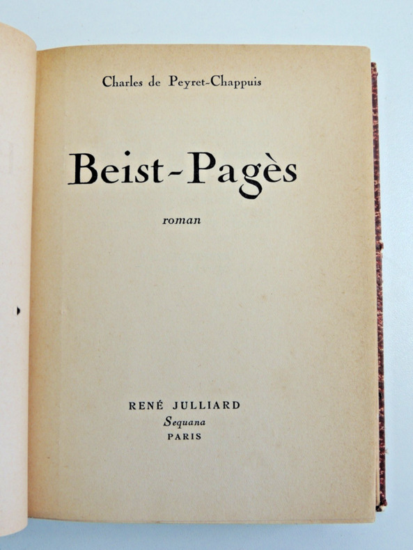 Beist-Pagès de Charles de Peyret-Chappuis est un roman singulier où l’observation sociale se mêle à une fine étude des caractères. À travers le destin de son protagoniste, l’auteur explore les ambitions, les faux-semblants et les jeux d’influence d’un milieu en quête de reconnaissance. Le récit met en lumière les tensions entre réussite matérielle et aspirations intérieures. Dans une langue précise et élégante, Peyret-Chappuis brosse le portrait d’une société attachée aux apparences. Le personnage de Beist-Pagès incarne les contradictions d’une époque marquée par le désir d’ascension et la fragilité des positions acquises. Un roman subtil, révélateur des mécanismes sociaux et des passions humaines. Volume relié demi toile, 190x150, couvertures conservées, petit trou sur les premières pages, très bel état intérieur, 314pp. Paris, Julliard 1943 ref/162