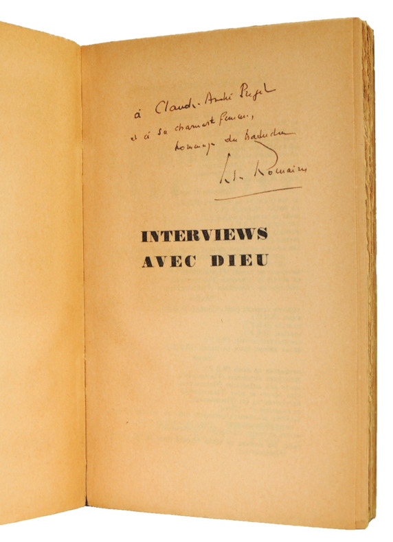 couverture défraîchie tranches fânées dédicace de Jules Romains intérieur assez propre bonne tenue
