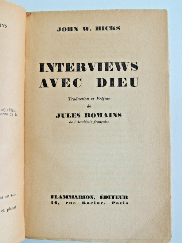 Traduction et préface de Jules Romains. Classification Dewey : 231-Dieu et miracles