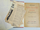 Exceptionnel exemplaire des Chroniques de Froissart, annoté par Maurice Druon pour préparer la rédaction des "Rois Maudits". Maurice Druon a souligné ou signalé certains passages, placé quelques annotations dans le texte, et glissé notamment deux feuillets portant diverses annotations autographes. La première série de notes sur une feuillet à en-tête "Maurice Druon" glissé dans le chapitre CXXIV du livre I Partie I, évoque l'été 1338, "le roi d'Angleterre à Anvers sur l'invitation d'Artevelde. Le roi croit tout arrangé. Atermoiements de la coalition. Les alliés se défilent sous prétexte différents" etc... "Phil VI certainement autoritaire et mufle s'est brouillé avec Hainaut son beau-frère" etc... Maurice Druon y précise notamment le numéro des pages concernées. Un autre feuillet, d'apparence plus récente, à en-tête du Directeur de Cabinet du Ministère des Affaires Culturelles (Maurice Druon en fut le ministre d'avril 1973 à février 1974), est glissé dans le chapitre XIII du Livre III, les qq. notes évoquent Orthez, Hôtel à la Lune, Ecuyer de Gaston de Foix Ernauton du Pan, Phébus fait la sieste, dors jusqu'à nonne, soupe à minuit". On sait que Maurice Druon évoquera la figure de Gaston Phébus dans le septième et dernier tome des "Rois Maudits" paru en 1977 : "Quand un Roi perd la France". Si l'exemplaire est d'apparence assez modeste (dos frotté), Maurice Druon avait cependant souhaité y marquer son attachement en y apposant ses beaux ex-libris "Académie Française, A l'Immortalité". Cet exemplaire tout à fait remarquable est un témoignage direct de la manière dont l'histoire "romancée" par Maurice Druon s'enracine dans les sources historiques du Chroniqueur Froissart, pour aboutir à ce chef-d'oeuvre du roman historique du XXe siècle.