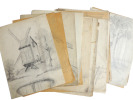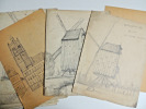 Lots 25 planches dessins artiste. Moulin à vent, port, paysage circa 1940. signé la plupart avec 2 dessins recto/verso bon état, format 32x25cm. On peut y voir; Chaumière de campagne, tour moyen-age, Village de France, route de campagne, Hondschoote. Killem. Le vieux moulin, Vieux Moulins à vent. Ile de France, Moulin de France. Terteghem signé Louis Franck, Moulin de Anquetz, Hameau des Hutre Gravelines Moulin à aubes, marine Marine, port & bateaux, bouquet de fleurs..