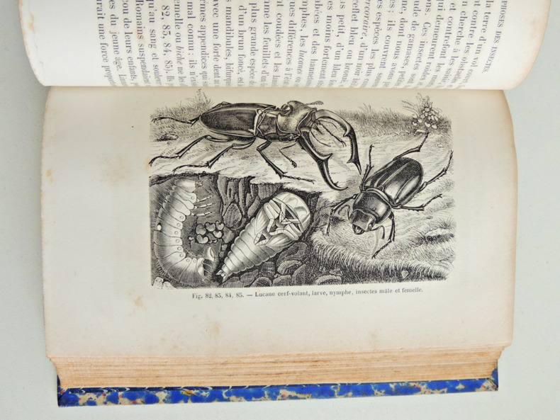 Ouvrage illustré de 350 vignettes par Delaye, Formant, Huet, etc.. Vol relié demi cuir, in8, 180x120, qq rousseurs, bel état, 411pp. Paris, Hachette 1870 ref/20