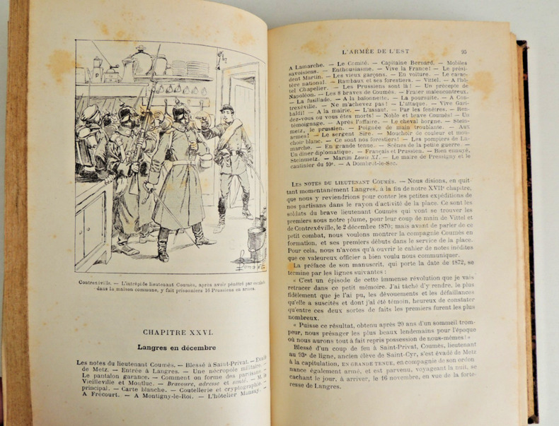 Garnier Frères Paris, Garnier Frères, 1895. In-4 reliés demi-basane bleue, dos lisse, titre doré. 973 pages; Gravures et cartes. La Bourgonce, Dijon, Nuits, Villersexel, Héricourtt, La Cluse. Reliure abimé aux plats avec manque de papier sinon correct