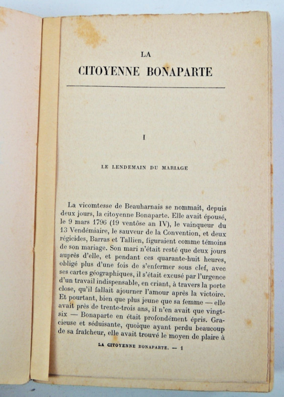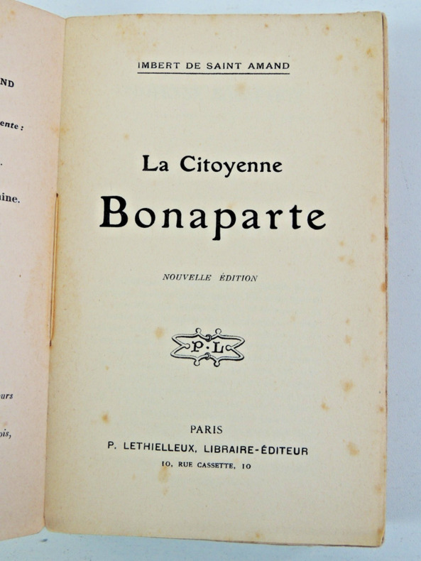 “La citoyenne Bonaparte” fait généralement référence à Joséphine de Beauharnais pendant la période de la Révolution française. Pendant la Révolution (à partir de 1789), les titres nobles comme marquise, comtesse ou impératrice sont abolis. On remplace ces appellations par “citoyen” et “citoyenne”, pour marquer l’égalité républicaine. Il s’agit de Joséphine après son mariage avec Napoléon Bonaparte en 1796. À cette époque, Napoléon n’est pas encore empereur mais général de la République. Joséphine est donc appelée “citoyenne Bonaparte” dans les documents officiels et le langage courant révolutionnaire. broché, 190x110, 283pp, bel état P. Lethielleux éditeur 1913 ref/138