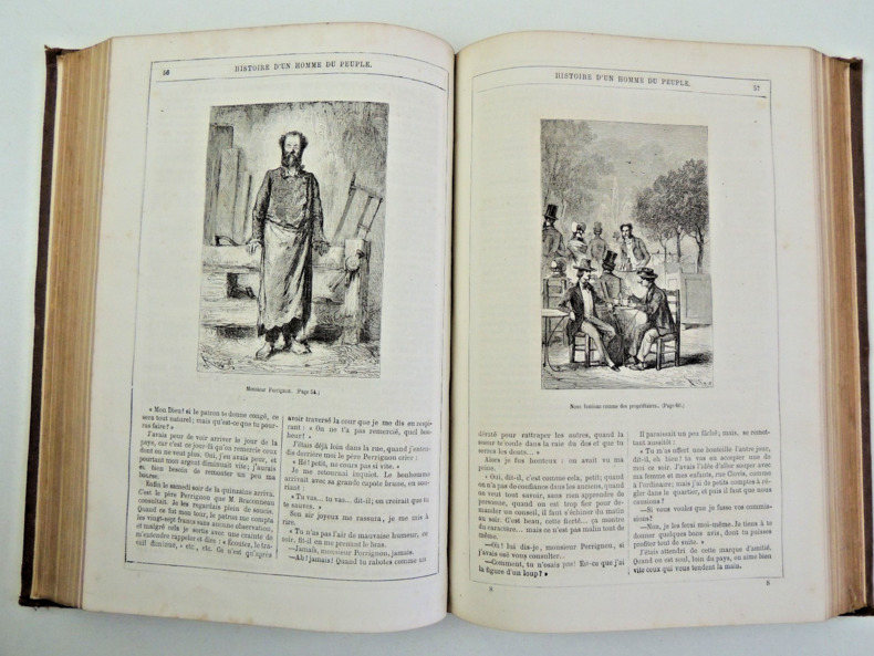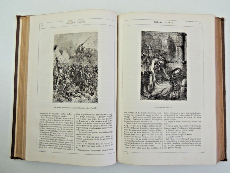 Paris, J. Hetzel, s.d. ; in-12, cartonnage de l'éditeur. Illustrés par Riou et Théophile Schuler - deuxieme partie contient :ROMANS NATIONAUX-l'homme du peuple-la guerre-le blocus demi cuir vert reliure frotté coin abimé.