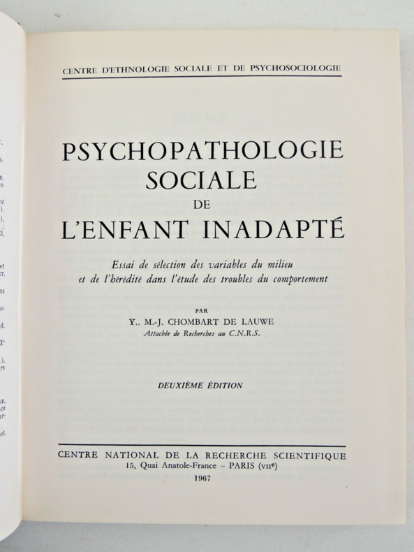 Essai de sélection des variables du milieu et de l'hérédité dans l'étude des troubles du comportement, les travaux antérieurs, cadres de vie de l'enfant, aspect écologique, le logement, le milieu social et le milieu familial, le comportement du couple parental et les troubles chez l'enfant, le développement physique, monographie. volume relié, 230x180, 275 pages, illustrations noir et blanc, état neuf. Centre Nationale de la recherche scientifique, 1967 ref/13