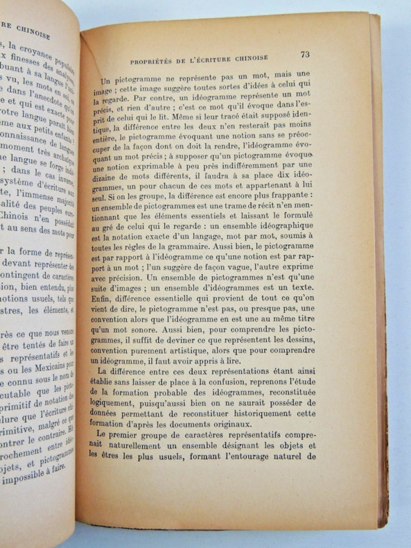 Payot "Bibliothèque scientifique" 1943, in-8 broché, 278 p. (très bon état) Réflexions sur les caractères propres de la langue chinoise et des idéogrammes ainsi que leurs conséquences sur la littérature du pays.