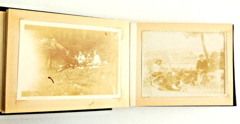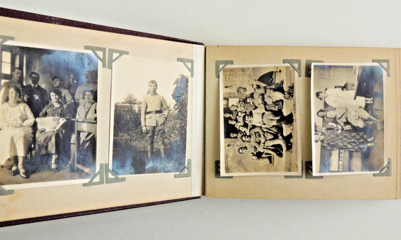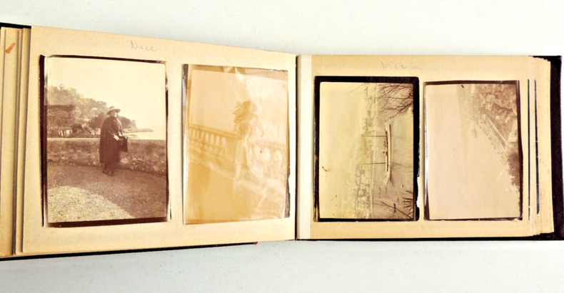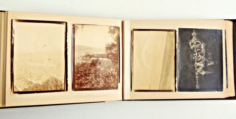 format 17x12cm, très bel état, 5 pages vide en fin d'album 52 photos, dont une grande partie albuminées + 11 photos militaires in fine Famille Bourgeoise du Sud de la France, quelques photos militaires guerre , Nice, Palavas