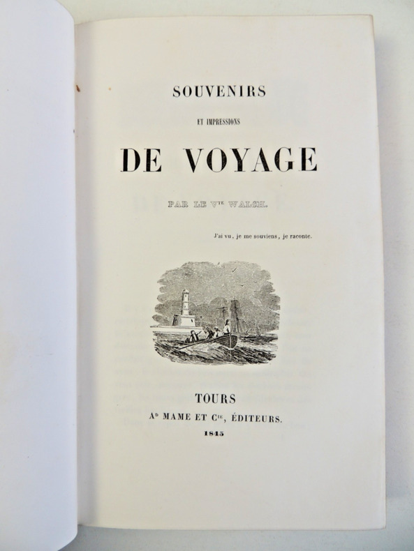 Livre écrit par le Vicomte Joseph Alexis Walsh. Il s'agit d'un récit de voyage qui relate les souvenirs et les impressions de l'auteur lors de ses voyages en Europe, en Afrique et en Asie. Le livre est divisé en plusieurs chapitres, chacun décrivant une région ou un pays spécifique. L'auteur partage ses observations sur les coutumes, la culture, la politique et l'histoire de chaque contrée visitée. Il décrit également les paysages, les villes et les monuments qu'il a vus. Joseph-Alexis Walsh, dit le vicomte Walsh, est un administrateur, journaliste et homme de lettres français né le 25 avril 1782 à Saint-Georges-sur-Loire et mort le 11 février 1860 à Paris.