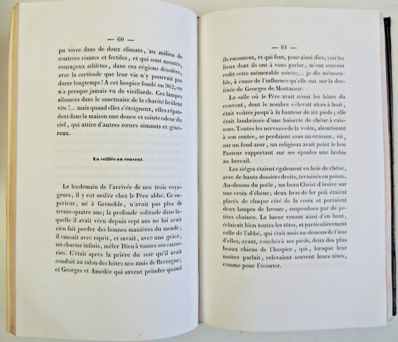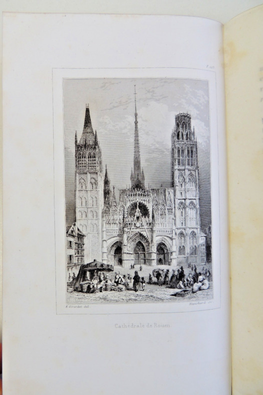 Jolies gravures sous serpentes. Saint-Paterne. Le Mont Saint-Bernard. Lyon. Auxerre. Rhou. Rollon. Harfleur. La Chapelle de Barre-y-va. Granville. Le Havre. Le Phare de Catteville. Honfleur. Les Pays de Caux. Yvetot. Rouen Volume in4, 22x14, relié plein cuir, toutes tranches dorées, très bel état intérieur, bien frais, 375pp. Tours, Mame 1845 ref/170