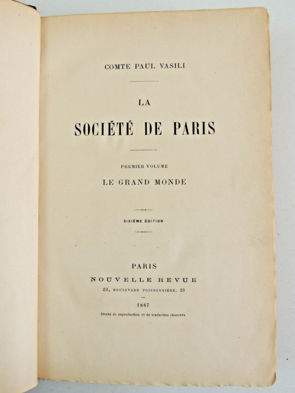 Le Comte Paul Vasili, en réalité la princesse Catherine Radziwill née Rzewuska le 30 mars 1858 à Saint-Pétersbourg, morte le 12 mai 1941 aux États-Unis, est une aristocrate polonaise, une aventurière et une faussaire. L'auteur nous plonge au cœur de l'élite parisienne du début du XXe siècle. À travers un style riche et évocateur, il dépeint les mœurs, les intrigues et les luttes de pouvoir de cette bourgeoisie raffinée. L'ouvrage s'inscrit dans la tradition des romans réalistes, où le détail et l'observation sociologique jouent un rôle clé. Vasili, par une prose scintillante, offre une critique à la fois savoureuse et désabusée de la haute société, révélant les tensions sous-jacentes d'un monde où l'apparence prime sur la substance. Le Comte Paul Vasili, connu pour son appartenance à la noblesse européenne, a vécu lui-même les contradictions de ses origines.