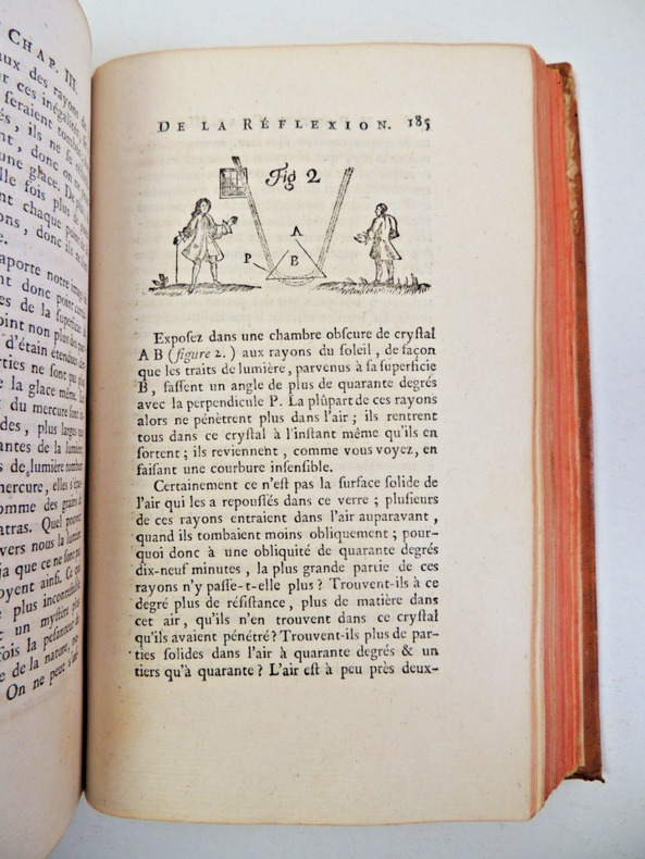 Dans ce premier chapitre des "Éléments de philosophie de Newton", Voltaire dénonce les excès de Descartes à qui il reproche d’avoir trop pensé, au point d’oser imaginer approcher ce Dieu dont fait état Newton. Il écrit encore: « S’il est prouvé qu’il existe un Être éternel, infini, Tout-Puissant, il n’est pas prouvé de même que cet Être soit infiniment "Bien-Faisant", dans le sens que nous donnons à ce terme. » Il conclut: «Je suis donc forcé de rejeter l’idée d’un être suprême, d’un créateur, que je concevrais infiniment bon, et qui aurait fait des maux infinis; et j’aime mieux admettre la nécessité de la matière, et des générations, et des vicissitudes éternelles, qu’un Dieu, qui aurait fait librement des malheureux.» Voltaire évoque une divergence entre Newton et Leibnitz*. Il confirme que Newton rejoignait Locke en ce qui concerne l’origine sensorielle des idées. Parallèlement, pour ce qui est de la notion de bien et de mal, Voltaire reproche à Locke d’avoir subi l’influence des témoignages de grands voyageurs qu’il qualifiera par la suite de «douteux». Il en profitera pour leur opposer un principe de la religion naturelle: «Fais ce que tu voudrais qu’on te fit ». Au sujet du mouvement, Voltaire nous dit que la matière ne comportant pas de mouvement en elle-même, ce dernier ne peut donc qu’être d’origine immatérielle. Il souligne le point de vue de Descartes, selon lequel la quantité de mouvement est constante dans l’Univers et il lui oppose d’une part l’avis de Leibniz, qui conçoit qu’il se perd du mouvement, bien que subsistent les forces, et d’autre part celui de Newton, qui rejette la dissociation entre force et mouvement. Voltaire penche en faveur de Newton lorsqu’il commente ainsi la position du philosophe: «Il faut que tout le monde convienne, que l’effet est toujours proportionnel à la cause; or s’il périt du mouvement dans l’Univers, donc la force qui en est cause périt aussi». Voltaire aborde un domaine dans lequel il a effectué ses propres expériences sur la lumière. Il réfute le «galimatias» des anciens et déplore cette ambition de Descartes de vouloir établir à tout prix un «système» qui l’a conduit à imaginer que la lumière «presse nos yeux comme un bâton poussé par un bout pressé à l’instant à l’autre bout». Voltaire reprendra ultérieurement les termes de Descartes: «J’avoue que je ne sais rien en philosophie, si la lumière du Soleil n’est pas transmise à nos yeux en un instant*» avant de présenter les expériences des astronomes Römer et Bradley, qui prouvent que la lumière ne se déplace pas instantanément mais qu’elle possède sa propre vitesse. Voltaire montre comment «un seul rayon de la lumière contient en soi toutes les couleurs possibles...». Avec des croquis simples et clairs, il explique l’expérience qui permit à Newton de faire apparaître le spectre de la lumière et de découvrir sa «réfrangibilité», c’est-à-dire la propriété des rayons lumineux de subir une déviation, lorsqu’ils passent dans un milieu dont la densité est différente. De toute évidence Voltaire est à l’aise dans ses descriptions, notamment parce qu’il a lui-même effectué ces différentes expériences dans son laboratoire du Château de Cirey. Bien qu’il respectait et admirait René Descartes à certains égards, Voltaire n’était pas prêt à tout admettre de ce dernier, en particulier le «plein» qui soutenait l’existence d’une «matière subtile » emplissant tout l’Univers. Il reprochait à Descartes de n’avoir jamais fait la preuve par l’expérience de l’existence de cette «matière subtile » qu’il qualifia au passage de «matière imaginaire ». S’appuyant sur des expériences conduites alors sur la chute des corps sous des cloches de verre, dans lesquelles on avait fait le vide, il concluait : «La figure des corps ne change en rien leur gravité; ce pouvoir de gravitation agit donc sur la nature interne des corps, et non en raisons des superficies », ce qui lui permettait, comme le montre l’extrait ci-dessus, d’expliquer comment les tourbillons de matière subtile, si chers à Descartes, n’étaient en fait qu’un «roman ingénieux sans vraisemblance ». Un chapitre souligne l’importance des travaux de Kepler sur lesquels Newton prit appui pour établir la loi de l’attraction. On y note les regrets exprimés par Voltaire, concernant les attaches religieuses du mathématicien et astronome allemand qui l’ont empêché de chercher une cause physique à ses découvertes. Voltaire conclut ultérieurement que la gravitation de Newton est bien démontrée par les lois de Kepler: «Par l’orbite que décrit la Lune et par l’éloignement de la Terre, son centre; par le chemin de chaque Planète autour du Soleil dans une ellipse; par la comparaison des distances et des révolutions de toutes les planètes autour de leur centre commun». Voici ici, définitivement écartée l’hypothèse d’une «Très sainte trinité», comme étant la cause des mouvements célestes.