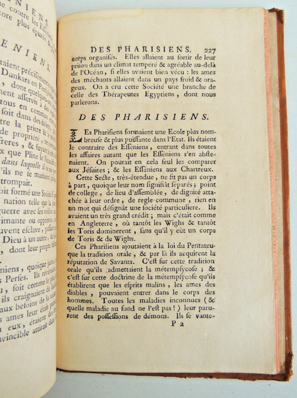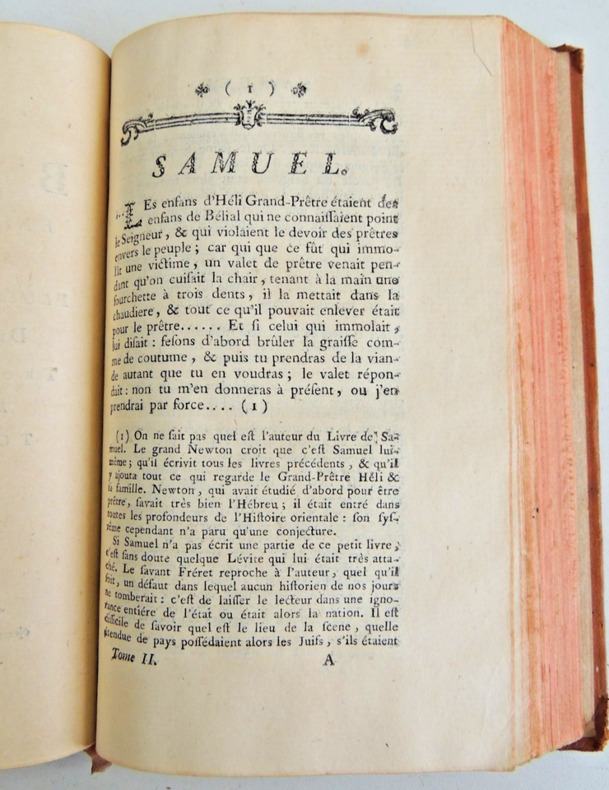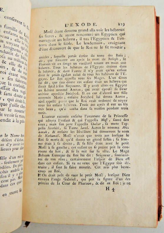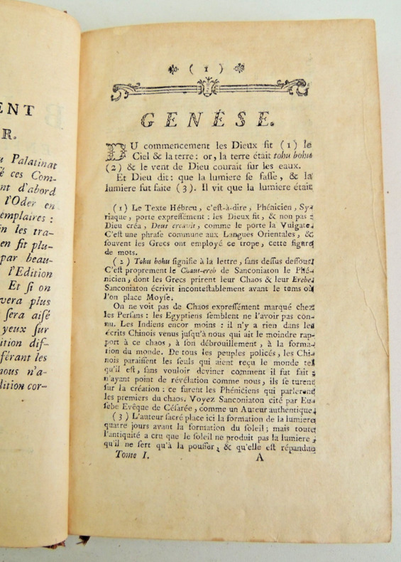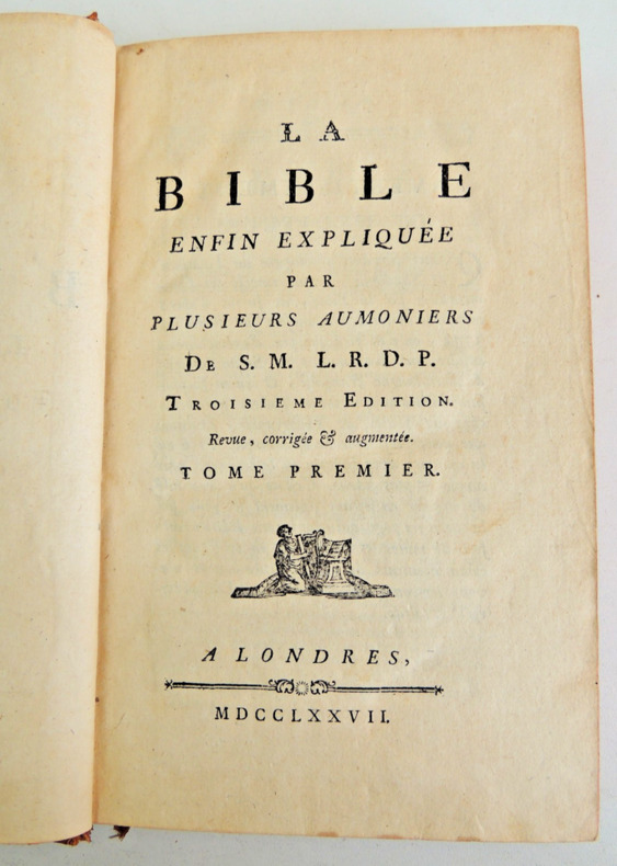 Nouvelle édition parue un an après l'édition originale de ce commentaire sur l'ancien testament, formé de questionnements malicieux de Voltaire ; en démontrant par l'absurde les invraisemblances des récits bibliques, le philosophe signe là l'un de ses ouvrages les plus mordant et haïs par l’Église catholique. les initiales au titre désignent Frédéric II, à qui Voltaire avait envoyé un exemplaire de son ouvrage en avril 1776.