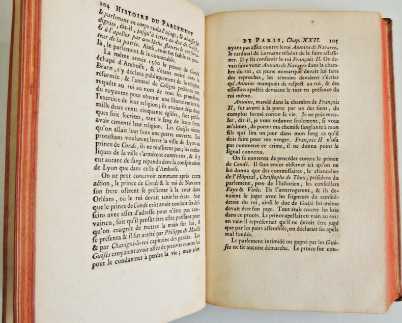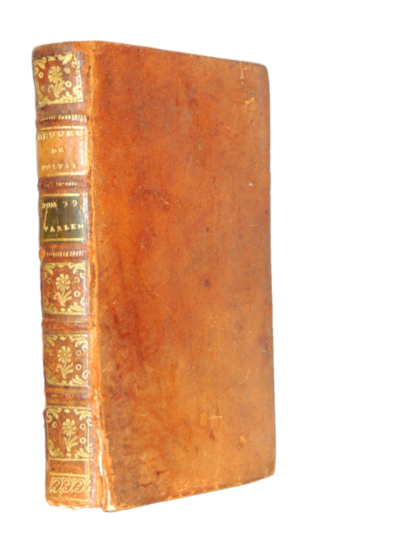 Seconde édition, en partie originale, publiée à la même date que la première. ''Traumatisé par la dramatique affaire du chevalier François-Jean de La Barre, condamné à être exécuté après avoir subi un supplice inhumain, Voltaire avait à cœur de dénoncer les excès d'une institution qui rendait si mal la justice. L'hostilité de Voltaire envers le Parlement de Paris n'avait rien à voir avec les querelles contemporaines: en retraçant son histoire, le philosophe entendait jeter le discrédit sur le fonctionnement de l’institution et mettre en évidence l'arbitraire et la barbarie des jugements rendus. Pour ce faire, l'auteur procède non en polémiste mais en historien. C'est avec objectivité que Voltaire dresse son «réquisitoire», adoptant pour ce faire une perspective chronologique. Il révèle ainsi le caractère redoutable de cette institution, gangrenée par la vénalité des charges et un profond obscurantisme. Voltaire insiste, c'est ce parlement qui condamna la maréchale d'Ancre pour sorcellerie, qui rendit des arrêts justifiant la Saint-Barthélemy et enregistra la bulle Unigenitus sous la pression du cardinal Dubois, qui ordonna le supplice infligé à Damiens, indigne selon lui d'une société civilisée''. (Valérie Crugten-André). ''Cet ouvrage fit beaucoup de bruit dès l'instant qu'il parut. On sut bientôt d'où venait le livre, on en nommait l'auteur. Voltaire, qui savait ce qu'il pouvait gagner à irriter les membres du Parlement, fut tellement effrayé de cette proscription, qu'il s'empressa d'écrire de tous côtés qu'il n'était point l'auteur de cet ouvrage. Il n'osa pas même en faire la confidence à ses plus intimes amis, tels d'Argental et d'Alembert. ''Il me paraît absurde, écrivait-il à ce dernier, de m'attribuer un ouvrage dans lequel il y a deux ou trois morceaux qui ne peuvent être tirés que d'un greffe poudreux, où je n'ai assurément pas mis le pied ; mais la calomnie n'y regarde pas de si près. Je vous demande en grâce d'employer toute votre éloquence pour détruire un bruit encore plus dangereux que ridicule''. Le Parlement renonça toutefois ''pour le moment, à l'inutile cérémonie de brûler le libelle, et au soin plus sérieux d'en chercher l'auteur''. (in Quérard). Elle finira pourtant par être saisie et détruite... Le président Desportes reconnut que le ''récit des faits dépeints dans l'ouvrage était d'une grande exactitude''. Barbier IV, Dictionnaire des ouvrages anonymes, 786 - Cioranescu III, Bibliographie de la littérature française du XVIIIème siècle, 64425 - Quérard X, La France littéraire, p. 362 - Bengesco, 1247 - Peignot II, Livres condamnés, 189. Angles émoussés. Petit défaut au mors supérieur. Quelques feuillets brunis et rares rousseurs dans le texte. Nonobstant, bel ensemble.