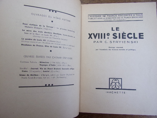 LE XVIIIe SIÈCLE C.Stryienski Livre in-8, 230x150, relié demi tissus, bradel, 375 pages Hachette 1909 Bel exemplaire en parfait état !