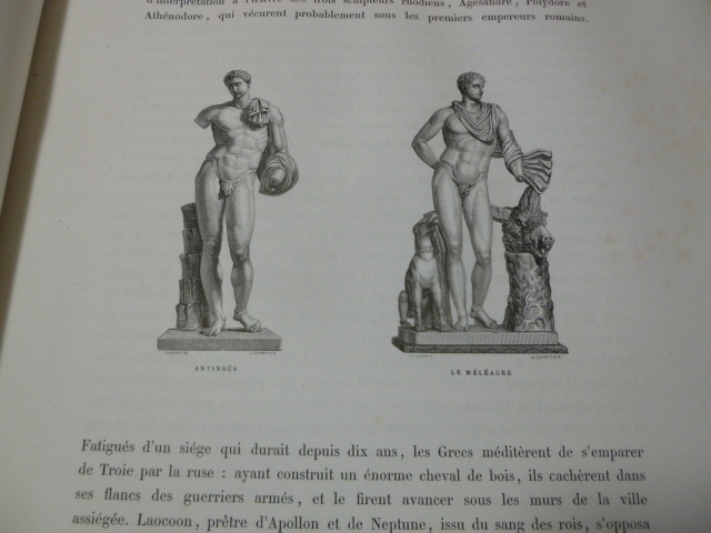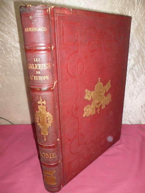 ARMENGAUD M. J.-G.-D.LES GALERIES PUBLIQUES DE L'EUROPE – ROME-Gênes, Turin, Milan, Parme, Mantoue, Venise, Bologne, Pise, Florence, Naples, PompeïParis, typographie de Ch. Lahure et Cie, 1859-1866, 434, 288, 312 pages – nombreuses gravures en noir et blanc dans et hors texte – bandeaux en tête de chapitre – lettrines et culs-de-lampe, intérieur frais, belles reliures, 28 x 34 cms, demi-cuir, tranches dorées, coins émoussés, épidermures en coiffes, mors frottés, jolis motifs dorées en médaillons sur les plats (dont un est bien frotté). Bien bel & colossal ensemble le Vatican, galerie des tableaux, le musée Chiaramonti, le musée Pie-Clementin, les chambres de Raphael, la chapelle Sixtine, la chapelle Nicolas V, le Capitole, les monuments antiques, les Catacombes, les palais, les eglises. ORIGINE ET CARACTERES DE L'ECOLE GENOISE – LES PALAIS DE GENES – TURIN VUE PANORAMIQUE – LE PALAIS MADAMA A TURIN – L'ACADEMIE DES BEAUX ARTS DESSINS A TURIN- MILAN – ORIGINE ET CARACTERES DE L'ECOLE MILANAISE – LE PALAIS BRERA A MILAN – LE CENACLE DE LEONARD DE VINCI A MILAN – EGLISES ET MONUMENTS A MILAN – BIBLIOTHEQUE AMBROISIENNE DESSINS A MILAN – PARME – LE MUSEE DE PARME – CHAMBRES DU CORREGE A PARME – EGLISES ET MONUMENTS A PARME – MANTOUE VUE PANORAMIQUE – LE PALAIS DU TE A MANTOUE – VENISE – BOLOGNE – PISE – EGLISES ET MONUMENTS DE PISE-Florence, Naples, Pompeï Les envois vers l'étranger & les dom-tom sont payants.Les envois hors de la France métropolitaine sont payants.