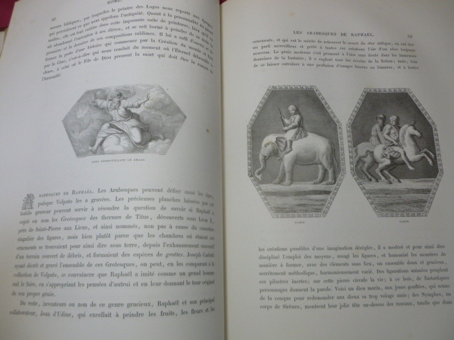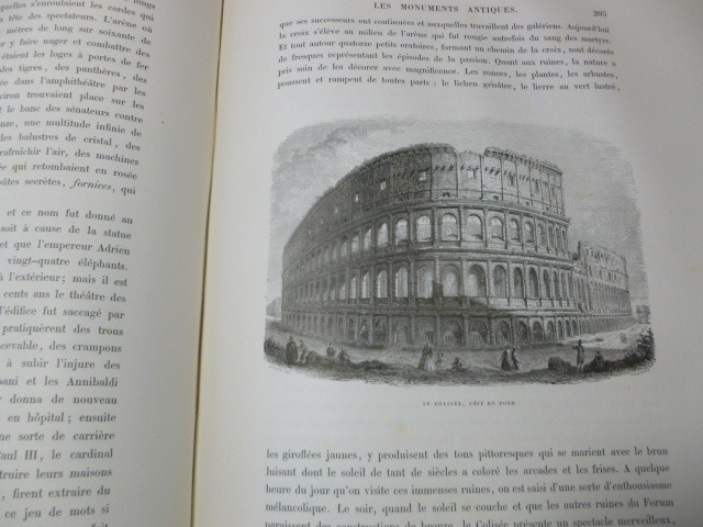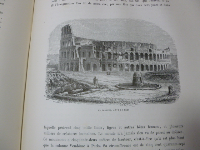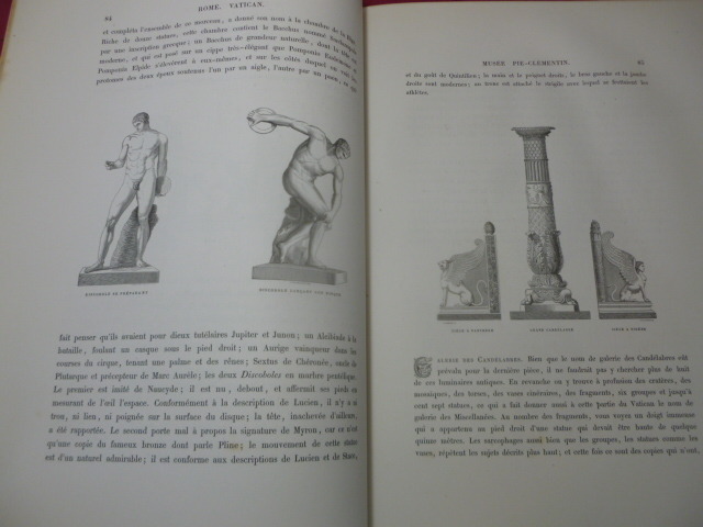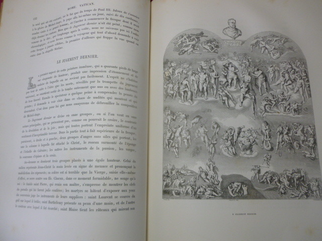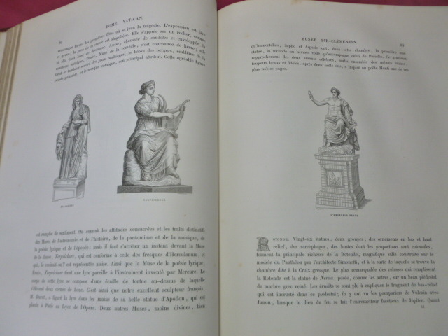 Illustré de nombreuses gravures en noir et blanc dans et hors texte. Titre, et motifs décoratifs (faisceau, louve, armes de la Papauté) dorés sur le dos et les plats. Tranches dorées. par J.G.D Armengaud, fondateur de l'Histoire des peintres. Le Vatican. Le Capitole. Les monuments antiques. Les Églises. In-Folio 380x280, relié demi-cuir, frottements, bel état intérieur. 434pp Lahure 1859