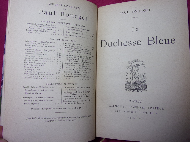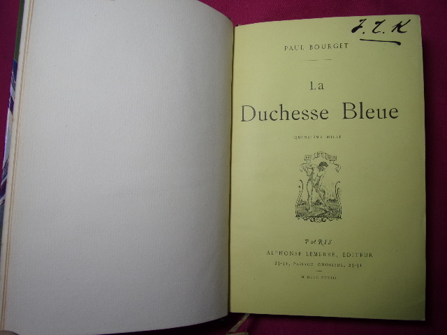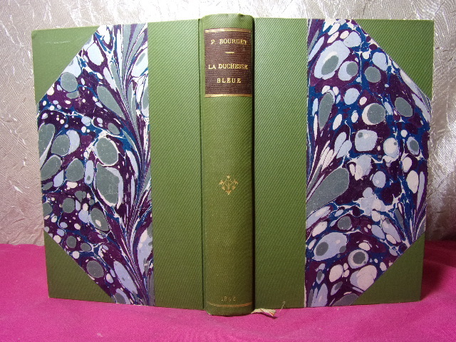 LA DUCHESSE BLEUE Paul Bourget volume relié demi toile, tranche de tête dorée, couvertures d'origines conservées, frottements, 190x140, bon état intérieur, 360pp ex libris KunKelmann " bien faire, laissez dire " Paris, Alphonse Lemerre 1893 d'autres volumes du même auteur dans la même reliure, groupez les achats ! ref/c89