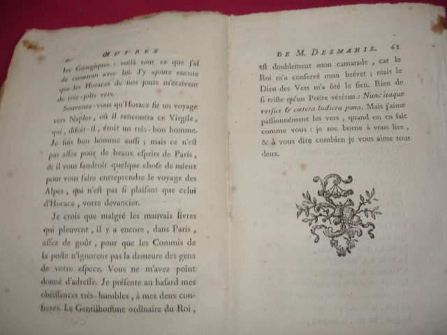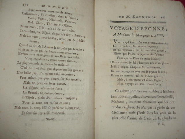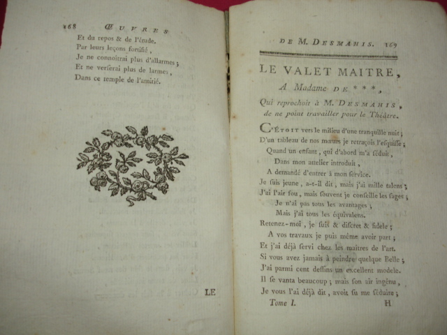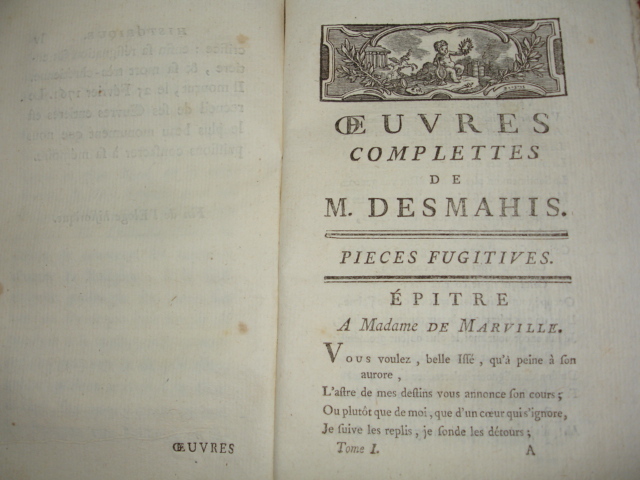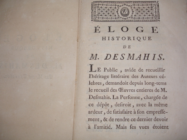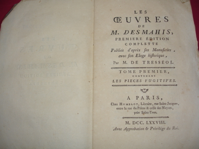 LES ŒUVRES DE M.DESMAHIS première édition complètte, publiée d'après ses manuscrits avec son éloge historique par M. de Tresséol Tome I, contenant les pièces fugitives broché, 185x115, sous couverture d'attente, 279pp, bon état Paris, chez Humblot MDCCLXXVIII