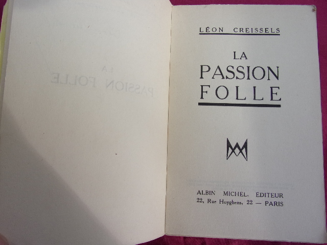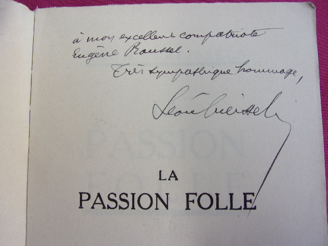 LA PASSION FOLLE Léon Creissels Bel envoi autographe de l'auteur " à mon excellent compatriote Eugène Roussel, très sympathique hommage. Léon Creissels. " vol broché. leg. usures de la couverture, bel état int. in8, 190x140, 250pp. Albin Michel 1934 ref/c100