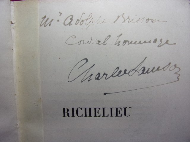 RICHELIEU drame en 5 actes et 9 tableaux d'après Bulwer-Lytton Charles Samson avec envoi et dédicace de l'auteur ! vol relié, 190x130, bon état intérieur, 162pp. Paris, Charpentier 1897 ref/c99
