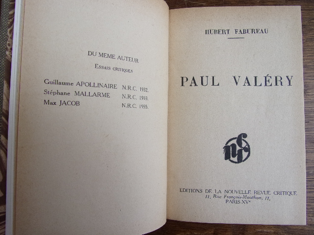 bel envoi autographe " pour Françis Ambrière, juge indulgent de mes premiers écrits, cette nouvelle tentative. Avec mon fidèle souvenir. Fabureau " Vol relié pleine toile, 180x120, couvertures conservées, parfait état int., 251pp Paris, Edition de la Nouvelle Revue Critique, 1937 ref/124