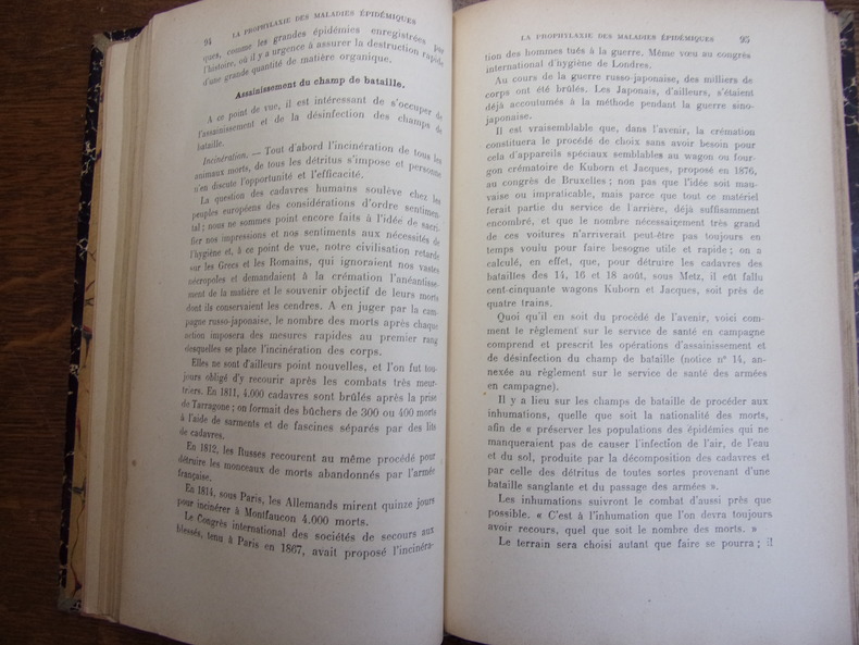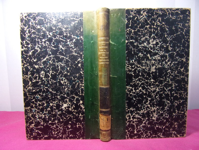 POUR LES OFFICIERS / NOTIONS SUR LA PROPHYLAXIE DES MALADIES ÉPIDÉMIQUES dans l'armée Coloniale Médecin Principal de 2e classe Troussaint vol relié gd in8, 220x140, demi cuir, très bel état intérieur, 238pp. Bibliothèque de Garnison de Nancy. Paris, Henri Charles Lavauzelle, vers 1900 ref/128