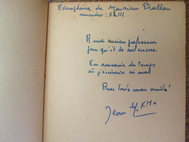 Bel exemplaire enrichit d'un envoi autographe de l'auteur : " Exemplaire de Monsieur Ballon, a mon ancien professeur pour qu'il le soit encore - en souvenir du temps ou j'écrivais si mal, avec toute mon amitié " Broché 190x140. 78pp. Collection " Les heures sombres " 1959 ref/132