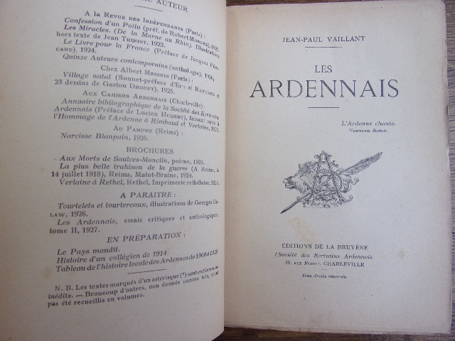 Bel envoi de l'auteur en page de garde vol gd in8, 180x130, bel état, 247 pages non coupées. Edition de la Bruyère, Charleville, 1926 ref/135