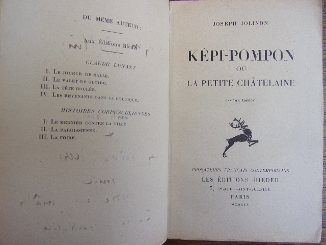 Lyon Les éditions Rieder 1930 in 12 (19x12) 1 volume broché, 239 pages [1]. Collection '' Prosateurs français contemporains ''. Edition originale, celui-ci un des 400 exemplaires numérotés sur alfa mousse. Bel exemplaire ( Photographies sur demande / We can send pictures of this book on simple request )
