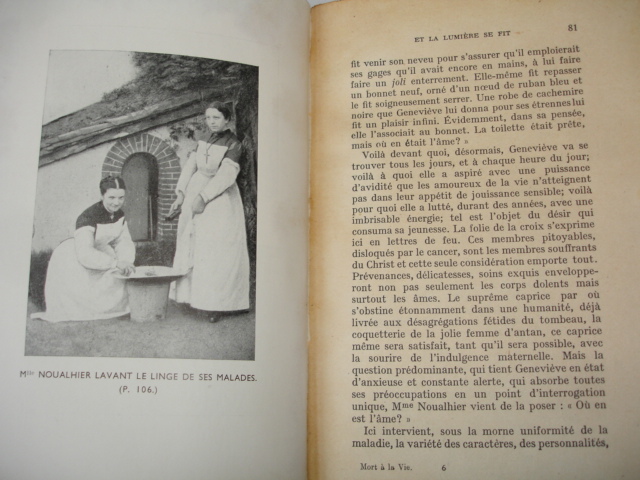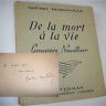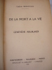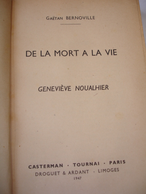 DE LA MORT A LA VIE / GENEVIÈVE NOUALHIER Gaétan Bernoville envoi de l'auteur en première page à Jean Yole Léopold Robert, dit Jean Yole, écrivain et homme politique français.Né à Soullans (Vendée) le 7 septembre 1878, mort à Vendrennes (Vendée) le 2 novembre 1956. Médecin en 1904, il revint exercer à Soullans, dans le marais, et se maria le 23 octobre 1906 avec une fille du bocage, Marie-Joseph Boisdé. Il se baptisa alors Jean Yole pour l'écriture, car ce médecin se déplaçait en yole pour aller voir les malades. Broché, 200x110, 210pp, très bel exemplaire Casterman 1947