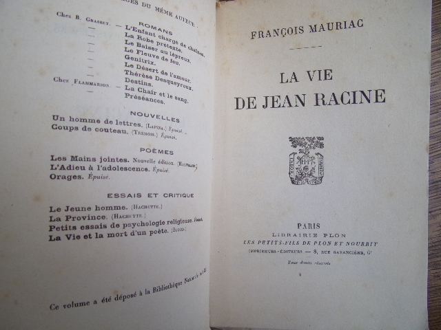 Vol in8, 190x120, bon exemplaire, 255pp. Paris, Plon 1928 ref/147